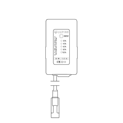 Piko RX 4SC kommer med 3.5Ah SmartCore batteri. SmartCore batteriet har lysindikator som både kan fungere som baklys og fortelle deg hvor mye strøm som er igjen på batteriet med 20% intervaller. Batteriet kan enkelt monteres bak på hodebåndet og veier kun 120 gram. Batteret kan brukes på alle Lupine sine lykter (med unntak av Lupine Alpha).